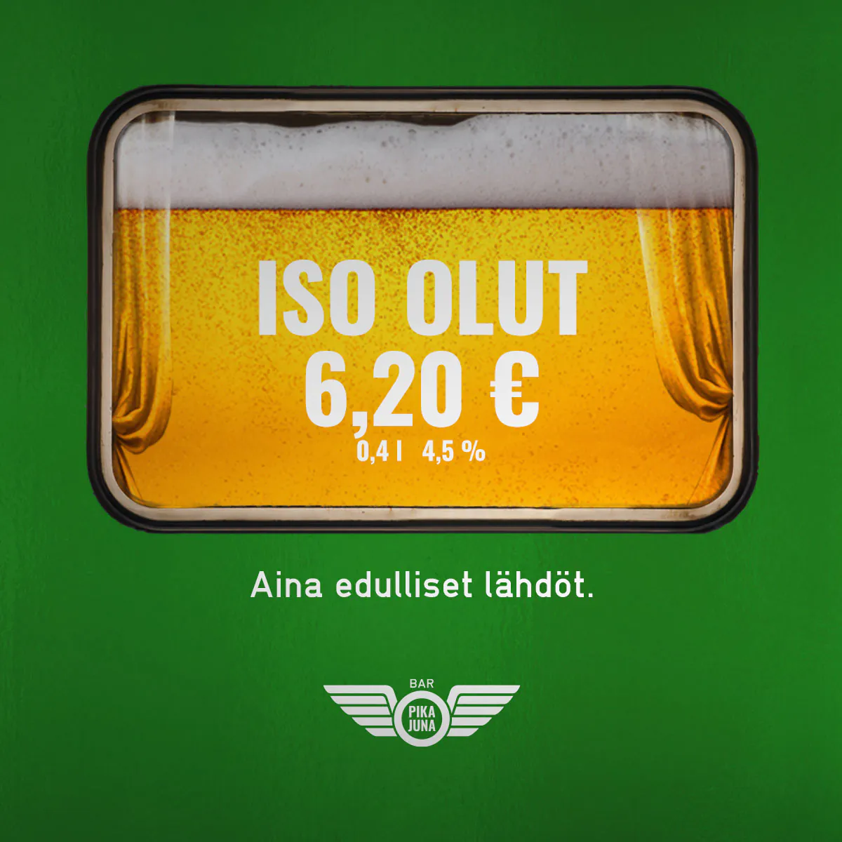 Pikajunassa vietät pikaisen tai hieman pidemmän pysähdyksen oluen tai muun maistuvan juoman ääressä työpäivän jälkeen, liikennevälinettä vaihtaessa. Paikka soveltuu mainiosti myös kohtaamispaikaksi ennen matkalle lähtöä, messuille tai matsiin mentäessä. Nopea vaihtuvuus mahdollistaa aina edulliset lähdöt, tuoppi olutta hanasta maksaa vain 5,80 € (0,4 l)